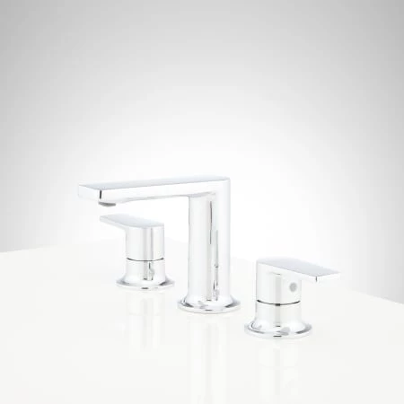 Complete your bathroom upgrade with the Berwyn Widespread Faucet. Made of durable metal, this fixture is sure to act as the centerpiece of your sink thanks to its eye-catching, angular silhouette and ultra-modern design. Two lever handles control the water pressure and temperature, making it an easy-to-use addition to any space. Choose your favorite corrosion-resistant finish to complete the look.