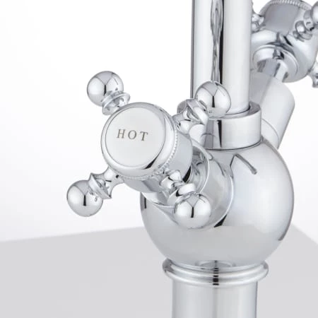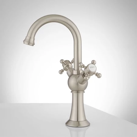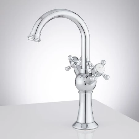 The charismatic Danelle single-hole vessel faucet features a traditional gooseneck spout that is enhanced by eye-catching, easy-turn cross handles. An excellent way to complete an above-counter sink, this vessel filler has an elegant profile and durable construction.