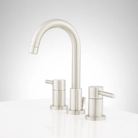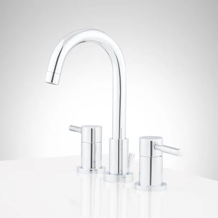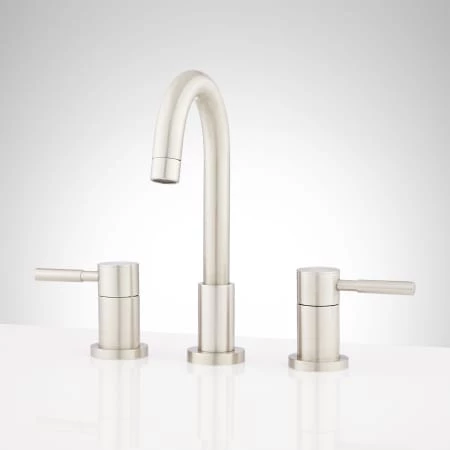Perfect for a modern bathroom remodel, the Edenton widespread bathroom faucet has a high-arching gooseneck spout with complementing lever handles. Made of high-quality materials, this product is solid brass and boats a smooth, tarnish-resistant finish. Comes with a matching pop-up drain that’s actuated by a lift rod located on the back of the spout.