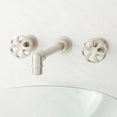 Creative design meets premium quality in the Edison Wall-Mount Bathroom Faucet. Inspired by steam pipes and fittings, this product features wheel handles and a sleek spout. All parts are made of solid brass and covered with a durable finish to prevent rust and corrosion.