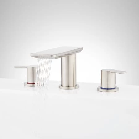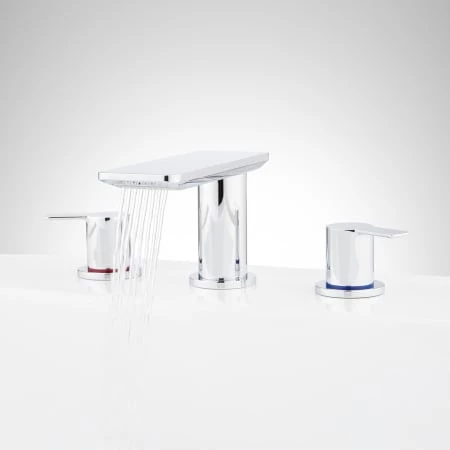 Bring high-end design to your bathroom with the Hollyn Widespread Faucet. Made of solid brass and plated in a tarnish-resistant finish, this product ensures lasting beauty and durability. A row of individual nozzles creates a wide, uniform spray that enhances its modern appeal. A matching pop-up drain is included.