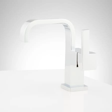 The squared details and flat gooseneck spout of the Rigi Single-Hole Bathroom Faucet will add modern flair to your bathroom. Made of solid brass, this faucet boasts a premium, metallic finish that will resist rust and discoloration. Comes complete with a matching pop-up drain for a finished look.