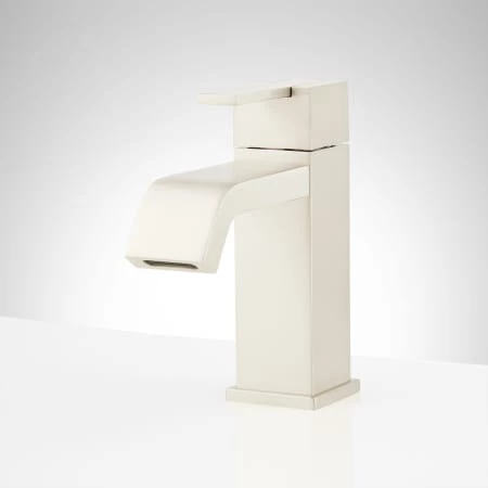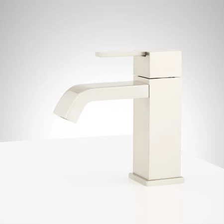The Rigi single-hole bathroom faucet features a flat, hook-shaped spout and crisp details to create its modern appeal. Made of solid brass, this product boats a premium, metallic finish that will never rust or corrode. Comes complete with a matching pop-up drain for a finished look.