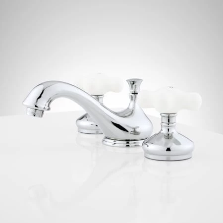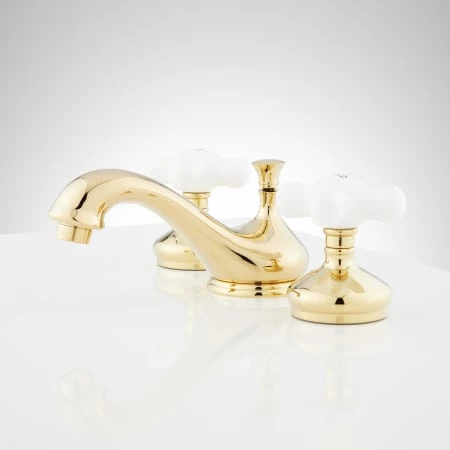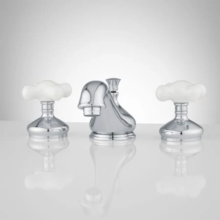 The Teapot widespread faucet has a charming design that is perfect for a classically styled bathroom. porcelain accented handles complement the rest of the fixture, which is covered with a tarnish-resistant finish. Made of brass, this faucet is designed for everyday use.