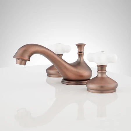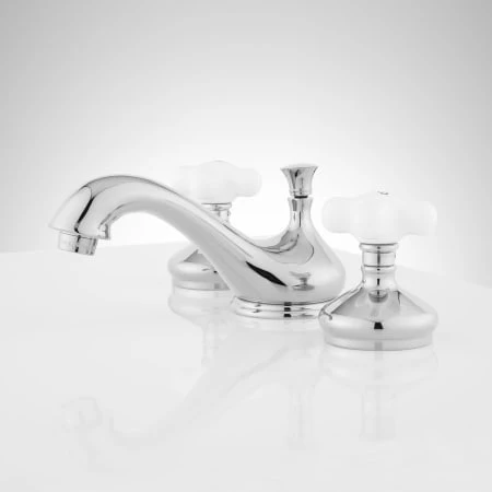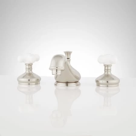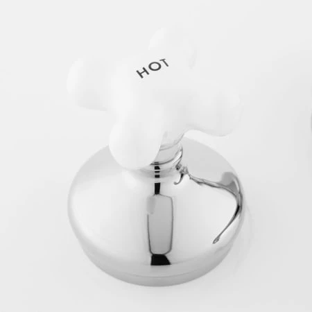 Small porcelain cross handles marked “Hot” and “Cold” are a delicate accenting feature on the Teapot Widespread Bathroom Faucet. With a low-rise spout and curved escutcheons, this widespread faucet is the prime choice for an upscale bathroom.
