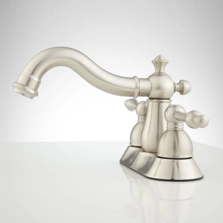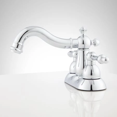 A shapely spout and attractive lever handles blend nicely in the Velouria Centerset Bathroom Faucet. A matching drain completes this faucet set, adding the finishing touch to your bathroom vanity.