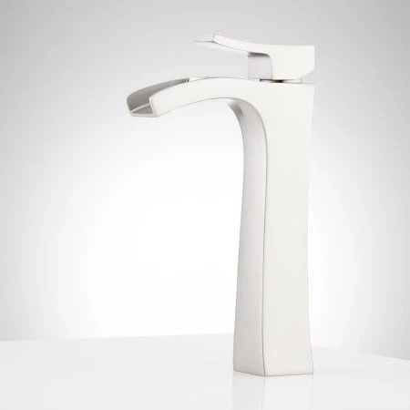 The Vilamonte Waterfall Faucet beautifully cascades water into your vessel sink below. Made of brass and covered with a corrosion-resistant finish, this product will hold up to the demands of everyday use. A matching pop-up sink drain is included to finish the look.